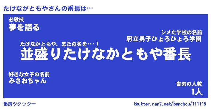 | 意味不明あだ名 | 『ペロリンたけなかともや』 |