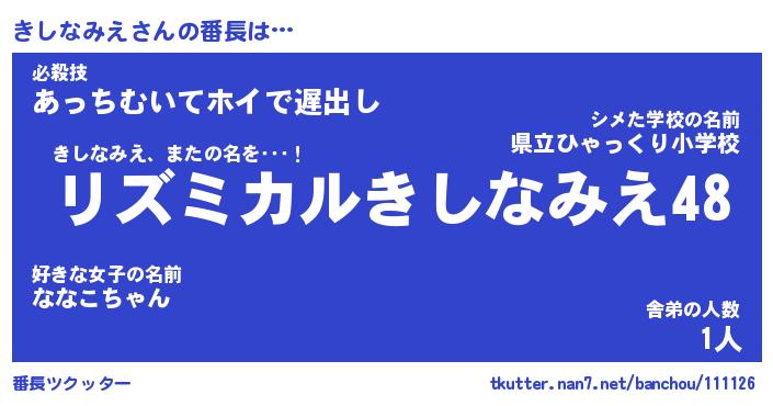 | 伝説のあだ名 | 『伝説のスナイパーきしなみえ』 |