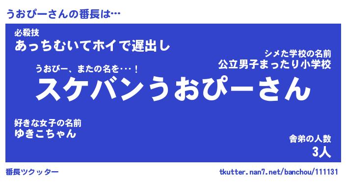 | 2回繰り返すあだ名 | 『うおうお』『ううおお』『おやおや』 |