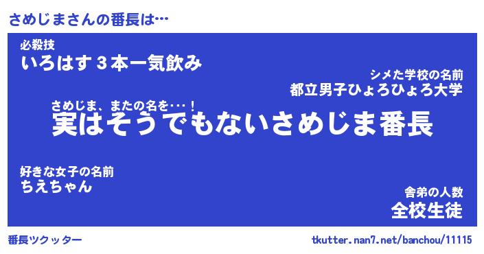 | ヘコむあだ名 | 『さめふぇ~』『なまこ酢』『さめお』 |