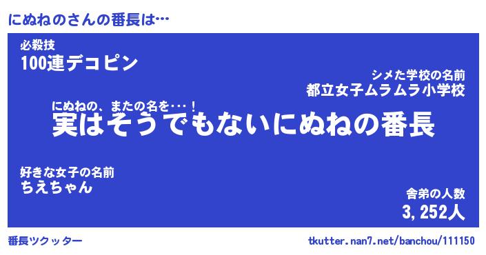 | ヒーロー風カッコイイあだ名 | 『スーパーニヌネノ』『黄金騎士ニヌ』 |