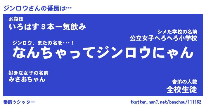 | 意味不明あだ名 | 『ペロリンジンロウ』『永久保存ジンロウ』 |