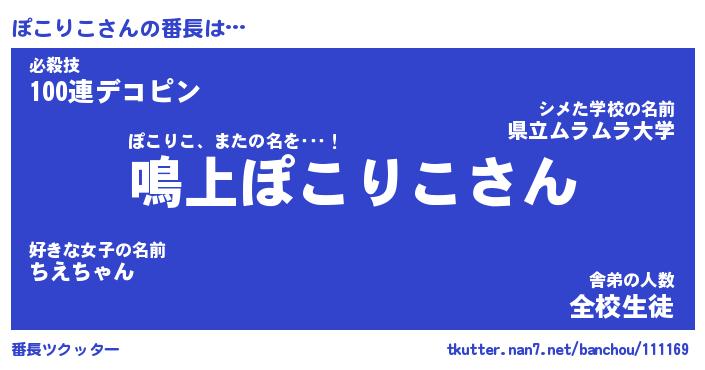 | ヘコむあだ名 | 『ぽこにー』『つくし』『ぽこお』 |