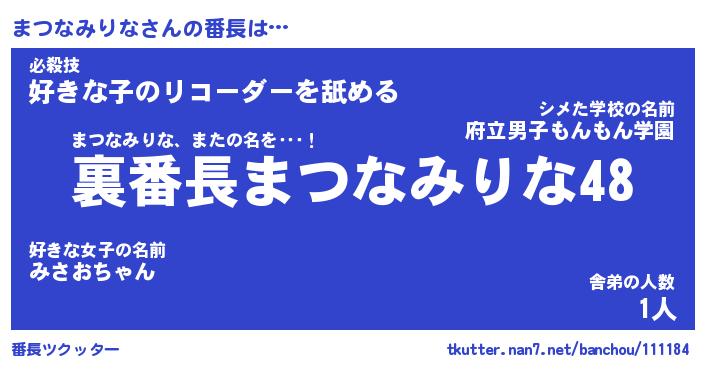 | 肩書あだ名 | 『まつなみりな御曹司』 |