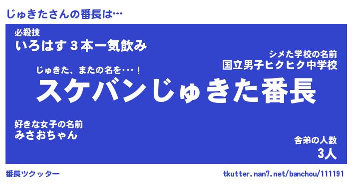 | 意味不明あだ名 | 『ペロリンじゅきた』『永久保存じゅきた』 |