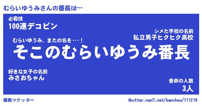 | ヘコむあだ名 | 『むらにー』『つくし』『むらぷりん』 |