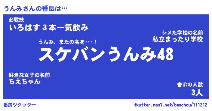 | ヒーロー風カッコイイあだ名 | 『スーパーウンミ』『ウルトラうんみマン』 |