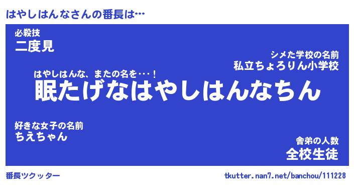 | ピコ太郎風あだ名 | 『ハコ太郎』『ピハ四郎』『ハヤ三郎』 |