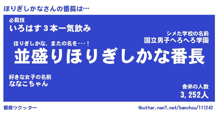 | ヘコむあだ名 | 『ほりっふぃ~』『なまこ酢』 |
