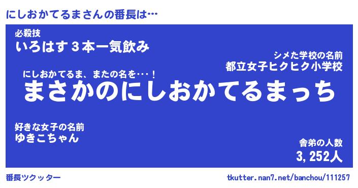 | 男性向けラノベタイトル風あだ名 | 『にしおかてるまの憂鬱』 |