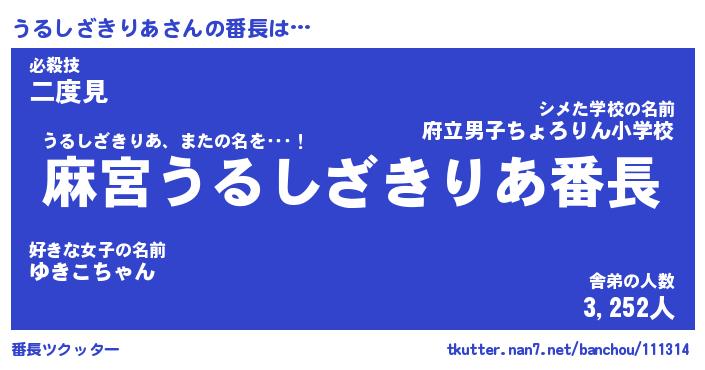 | 肩書あだ名 | 『うるしざきりあ店長』 |