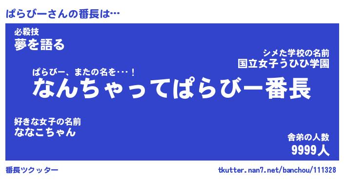 | 意味不明あだ名 | 『ペロリンぱらびー』『永久保存ぱらびー』 |