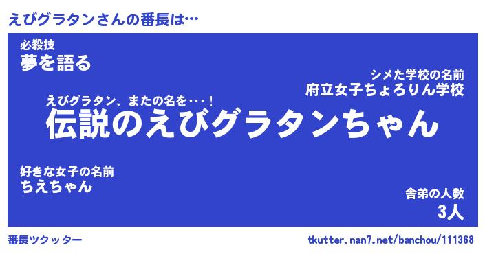 | 2回繰り返すあだ名 | 『えびえび』『ええびび』『おらおら』 |