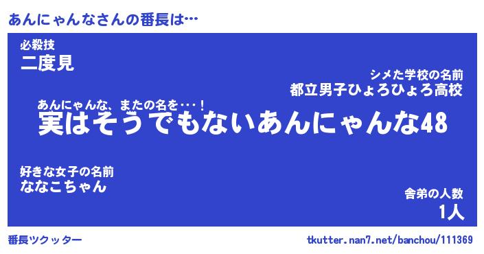 | ポケモン風あだ名 | 『アンチュウ』『アンニダネ』 |