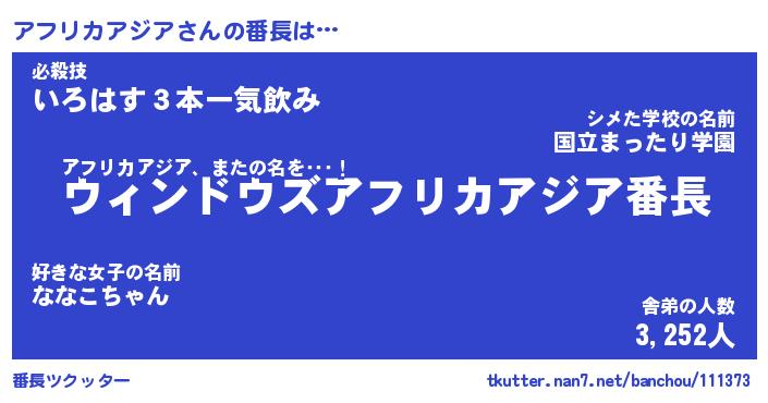 | 男性向けラノベタイトル風あだ名 | 『アフリカアジアの憂鬱』 |