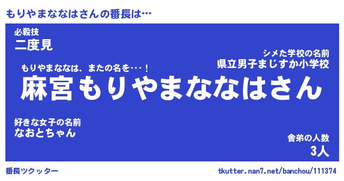 | 恥ずかしいあだ名 | 『プリティーもりやまななは』『もりちん』 |