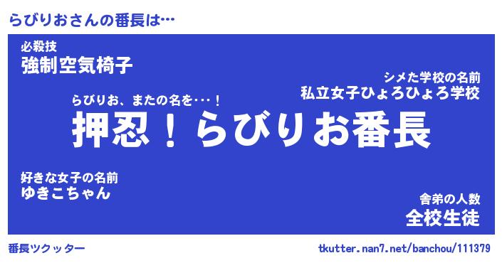 | 肩書あだ名 | 『らびりお御曹司』『らびりお総理大臣』 |
