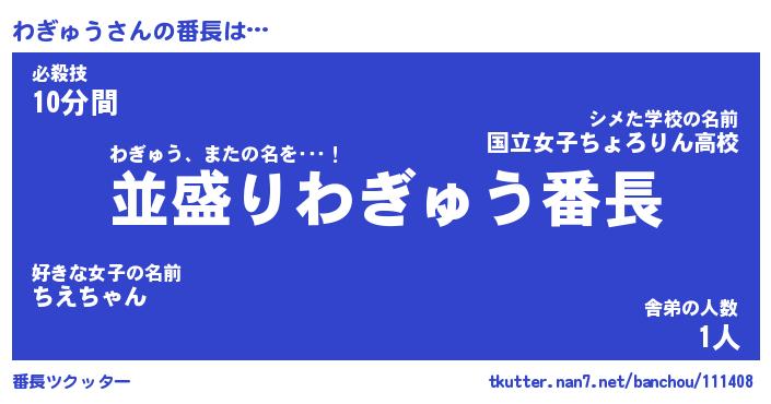 | 意味不明あだ名 | 『ペロリンわぎゅう』『永久保存わぎゅう』 |
