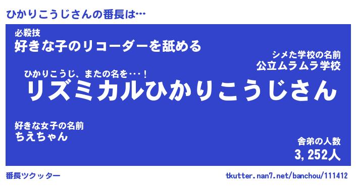| ピコ太郎風あだ名 | 『ヒコ四郎』『ピヒ十郎』『ヒカ八郎』 |