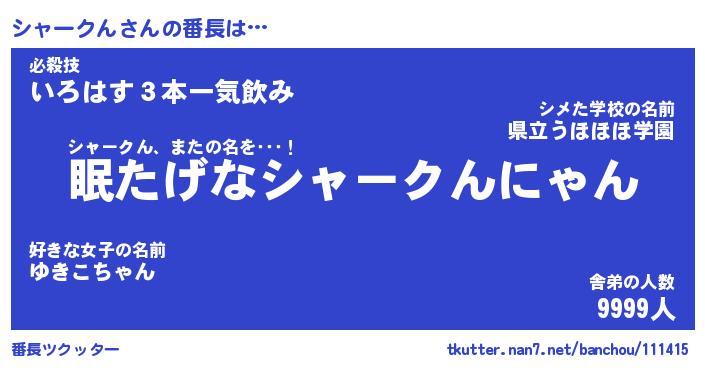 | ヘコむあだ名 | 『シャっふぃ~』『なまこ酢』 |