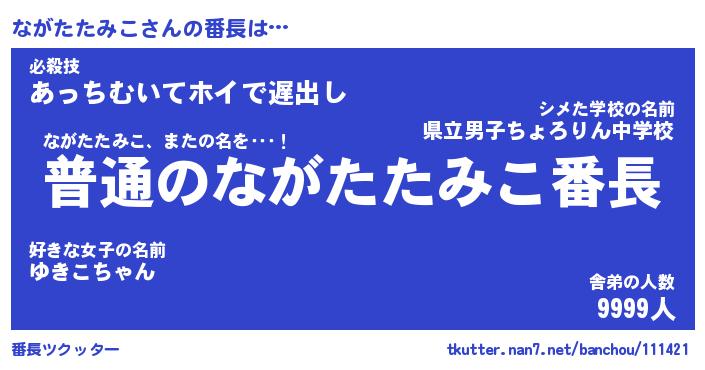 | ヒーロー風カッコイイあだ名 | 『スーパーナガタタミコ』『天弓騎士ナガ』 |