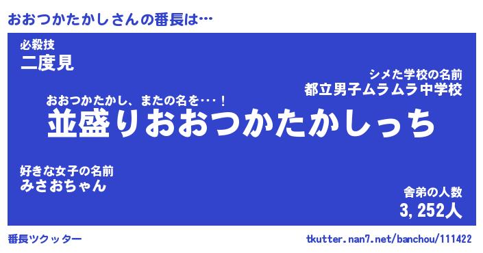 | 男性向けラノベタイトル風あだ名 | 『おおつかたかしの憂鬱』 |