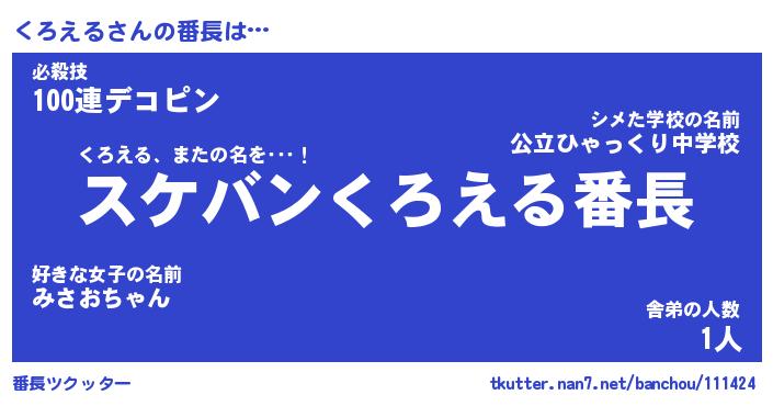 | 意味不明あだ名 | 『ペロリンくろえる』『永久保存くろえる』 |