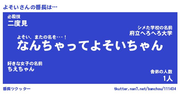 | ヘコむあだ名 | 『よそにー』『レバニラ』『よそを』 |