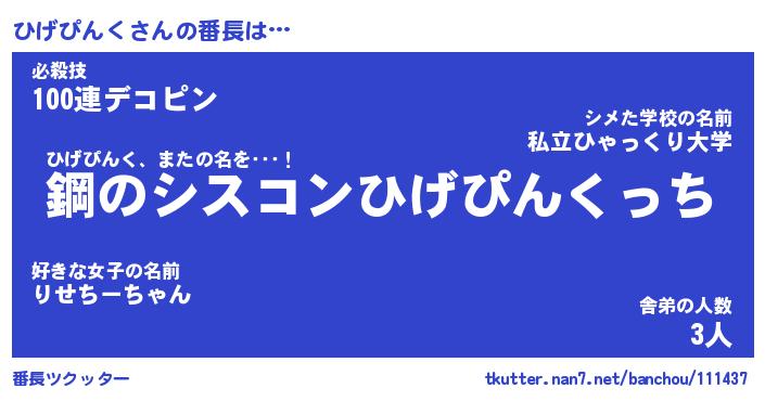 | ピコ太郎風あだ名 | 『ヒコ八郎』『ピヒ四郎』『ヒゲ三郎』 |