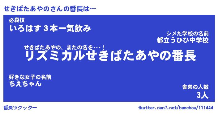 | 肩書あだ名 | 『せきばたあやのCEO』 |