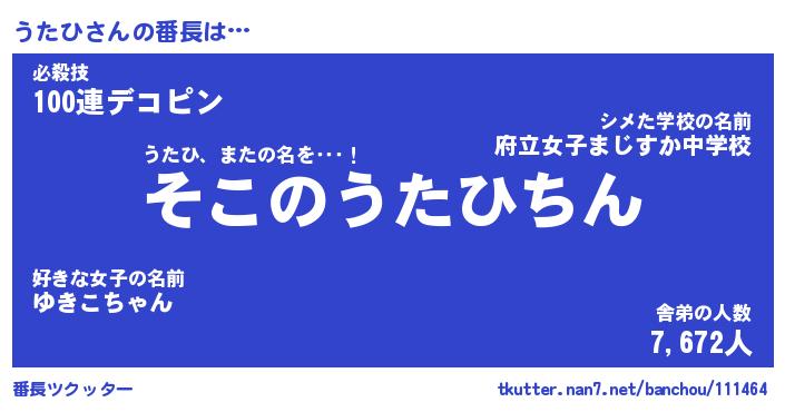 | ポケモン風あだ名 | 『ウタチュウ』『ウタヒダネ』 |
