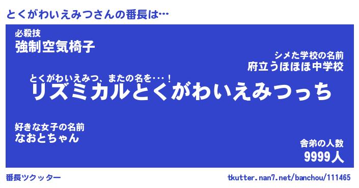| ツイッター | とくがわいえみつさんのツイッターID『kikurage_idle』 |