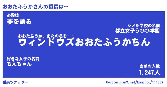 | 男性向けラノベタイトル風あだ名 | 『おおたふうかの憂鬱』 |