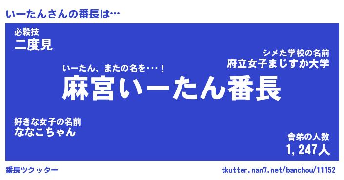 | 肩書あだ名 | 『いーたん店長』『いーたん国家主席』 |