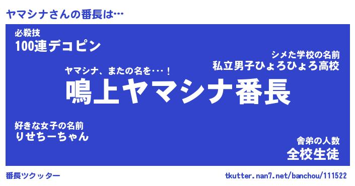| 意味不明あだ名 | 『ペロリンヤマシナ』『永久保存ヤマシナ』 |