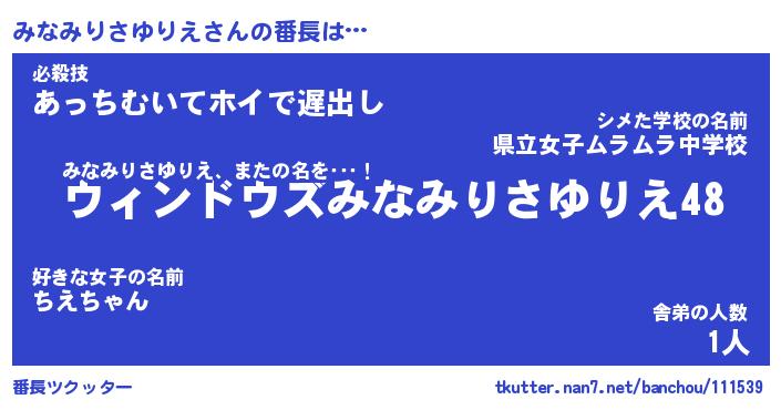 | 男性向けラノベタイトル風あだ名 | 『みなみりさゆりえの憂鬱』 |