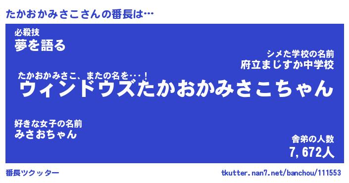 | 伝説のあだ名 | 『伝説の竜騎士たかおかみさこ』 |