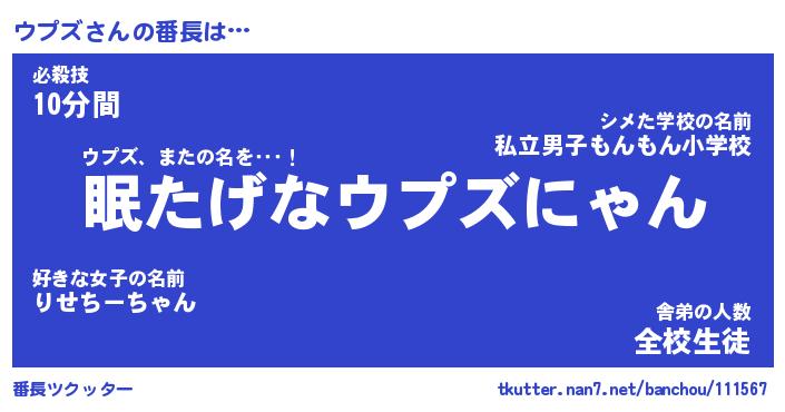 | 肩書あだ名 | 『ウプズ社長』『ウプズ国家主席』 |