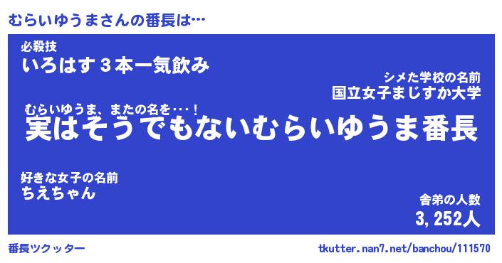| 肩書あだ名 | 『むらいゆうまCEO』『むらいゆうま大統領』 |