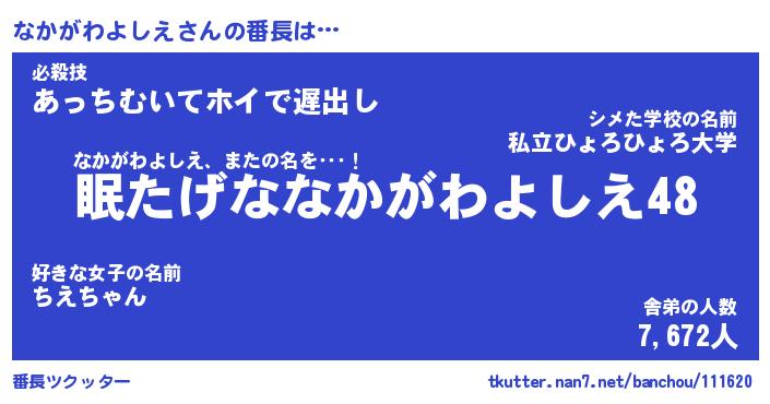 | 肩書あだ名 | 『なかがわよしえ店長』 |