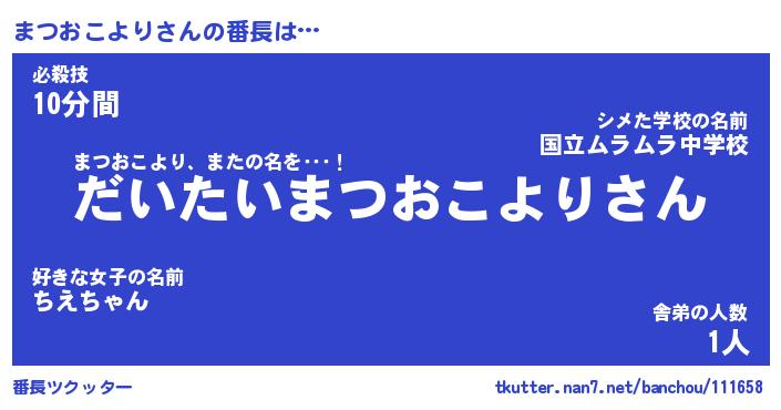 | 肩書あだ名 | 『まつおこより社長』『まつおこより先生』 |