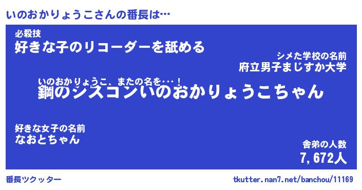 | 意味不明あだ名 | 『ペロリンいのおかりょうこ』 |