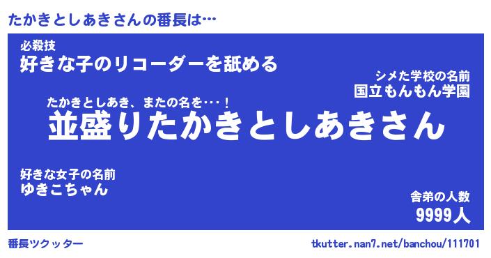 | 肩書あだ名 | 『たかきとしあき御曹司』 |