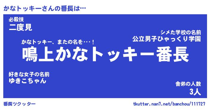 | 2回繰り返すあだ名 | 『かなかな』『かかなな』『ぬるぬる』 |