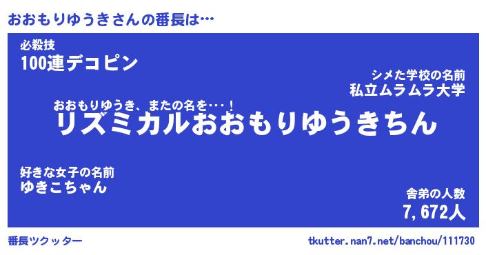 | 伝説のあだ名 | 『伝説のスナイパーおおもりゆうき』 |