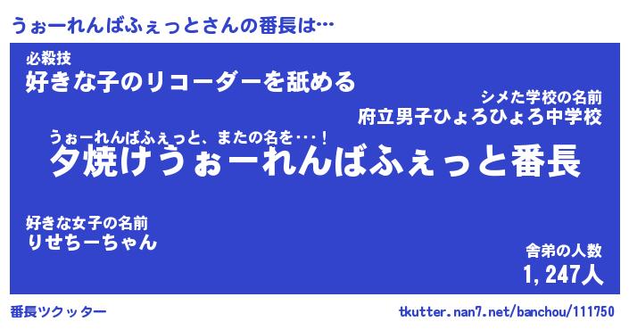 | 2回繰り返すあだ名 | 『うぉうぉ』『ううぉぉ』 |