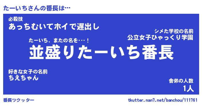 | 伝説のあだ名 | 『不死鳥のスナイパーたーいち』 |