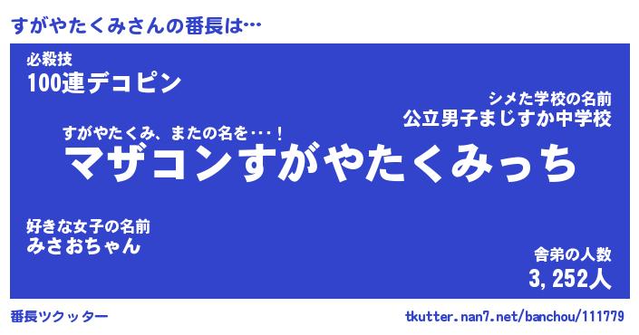 | ヘコむあだ名 | 『すがもー』『つくし』『すがっちょ』 |