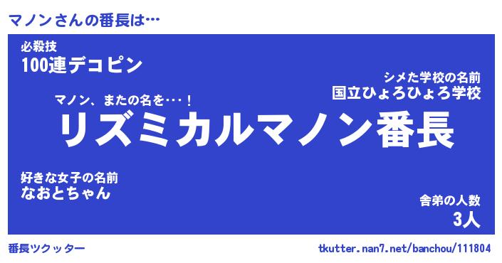 | ヒーロー風カッコイイあだ名 | 『スーパーマノン』『ウルトラマノンマン』 |