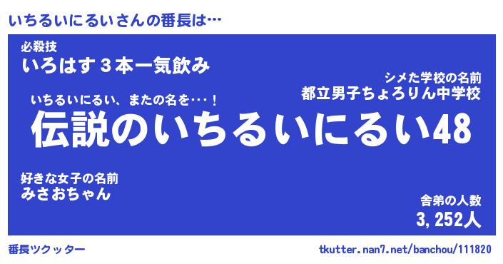 | ピコ太郎風あだ名 | 『イコ次郎』『ピイ太郎』『イチ五郎』 |